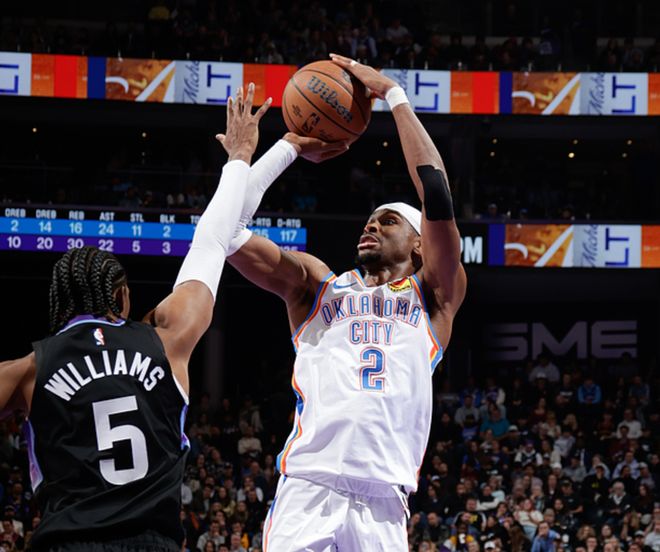 爵士主场迎战雷霆,爵士缺少凯斯勒、尼昂,雷霆缺少杰伦、威金斯,上半场比赛爵士表现出色,一度领先18分,半场战罢领先1分,下半场比赛雷霆展现可怕实力,半场赢了爵士33分,最终雷霆以32分优势大胜爵士。雷霆8人得分上双,亚历山大14中9(三分3中3)得到31分2板8助,杰林9中5(三分7中5)得到15分6板6助2断,爵士方面乔治10中6得到20分3板8助,马尔卡宁8中4得到19分6板3助。
