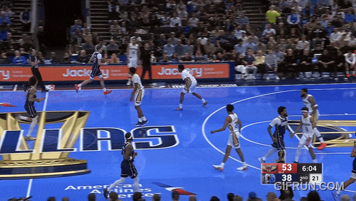突破飞扣,但靠哄:拉球疑似要挡拆,骗动对面重心,直接变向突破。