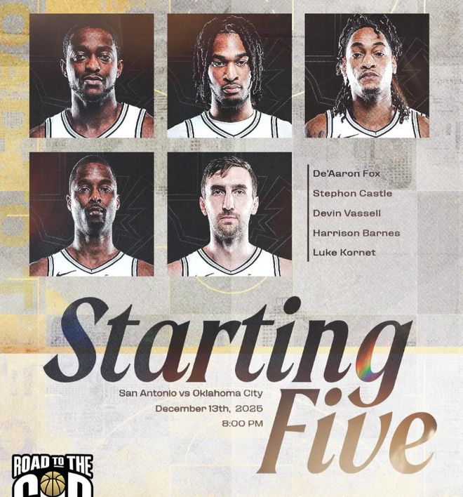 首发阵容方面,雷霆队这边,全员可以出战,教练排出的首发五人组为:谢伊-吉尔杰斯-亚历山大、切特-霍姆格伦、吕冈茨-多尔特、以赛亚-哈尔腾施泰因、杰伦-威廉姆斯;马刺队这边,文班亚马迎来复出,首发阵容则为:哈里森-巴恩斯、斯蒂芬-卡斯尔、达龙-福克斯、德文-瓦塞尔、卢克-科内特。